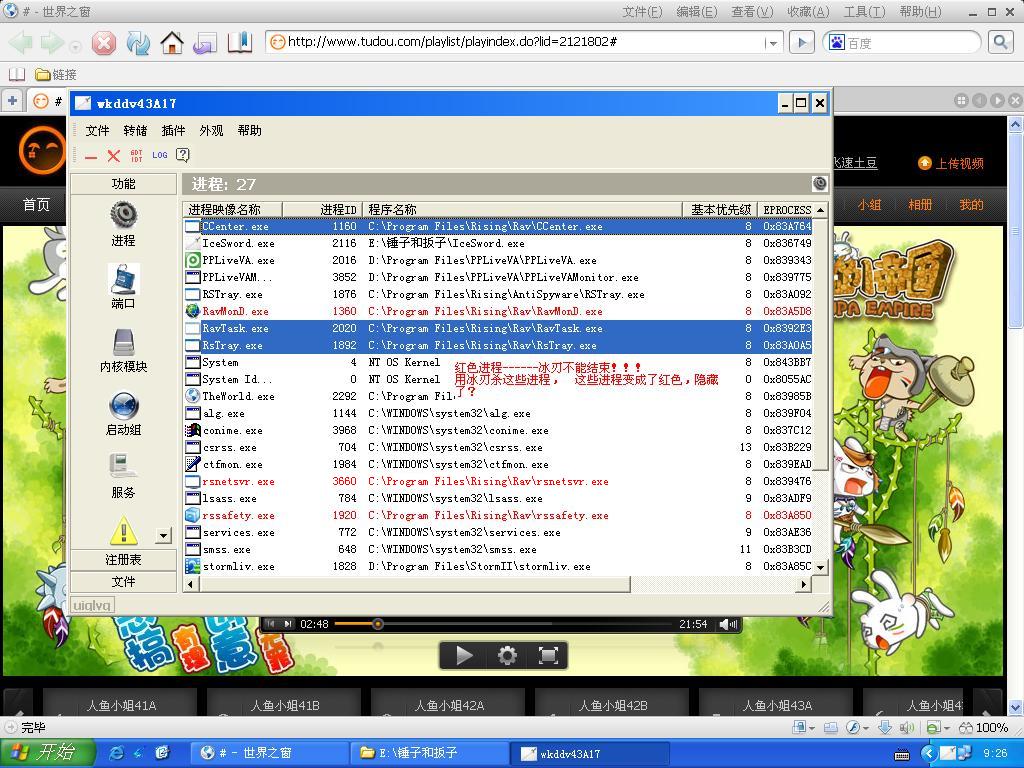 用冰刃结束瑞星的进程时,瑞星的进程会变红,要的就是