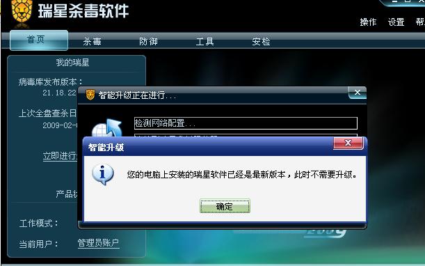 回复:我的瑞星不能升级了,,,