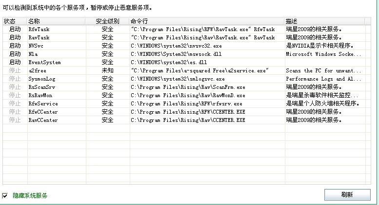 此图瑞星最后五项服务显示状态就是停止,是正常情况。并不影响瑞星的任何功能使用。