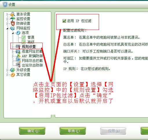 如题 我的系统是VISTA U版的 SP1 开机后应用程序网络监控和IP包过滤不会自动开启防御 今天自动升级后发现所有防护都关闭了