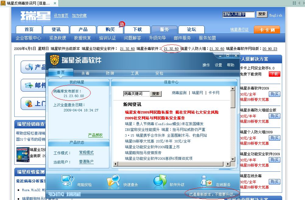 回复:瑞星杀毒软件更新问题。表里不一却显示是最新版本。