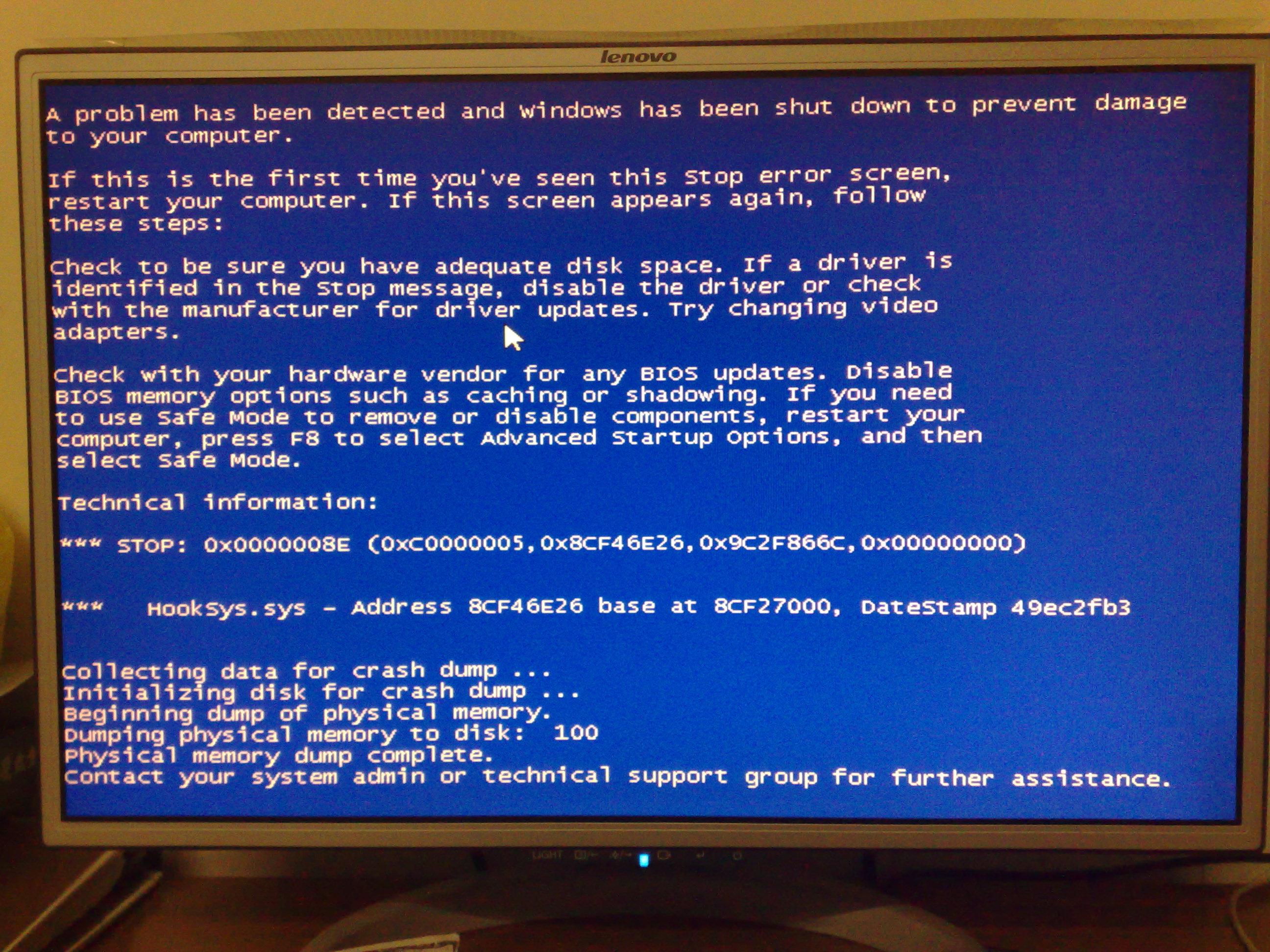 5月2日出现不同的HOOKSYS.SYS的蓝屏信息