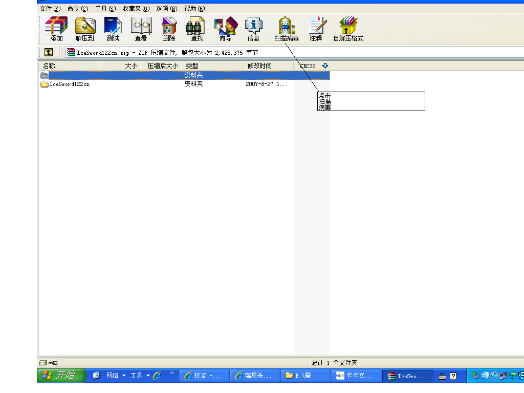 再用winrar打开压缩文件,后使用扫描病毒。出现以下情况。并不包是否有病毒。