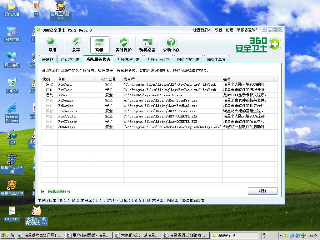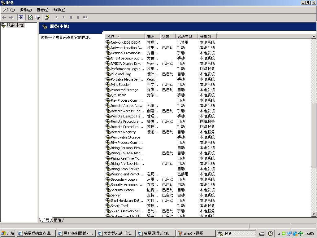 楼主第一张截图里显示的瑞星服务,在进入系统后默认就是停止状态,属于正常现象