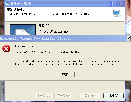 回复:瑞星开机出现ccenter.dll错误,怎么办?
