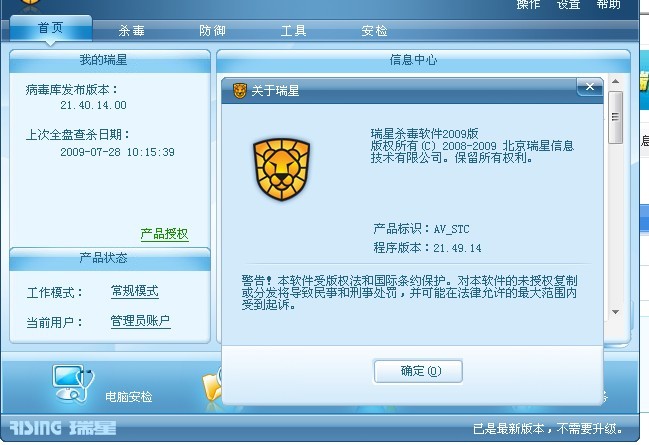 瑞星杀毒软件2009公测