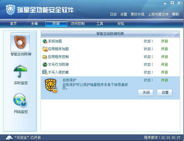 注:Windows 9X、NT和所有64位操作系统不支持主动防御功能。