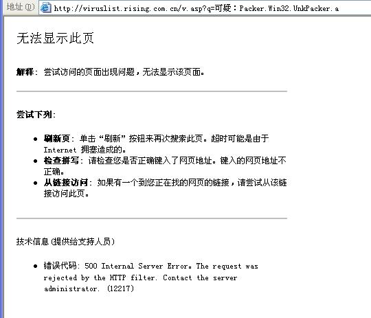 然后我就右键直接查看,该病毒信息,结果跳出的框居然都无法显示,我其他网站上网都正常的。