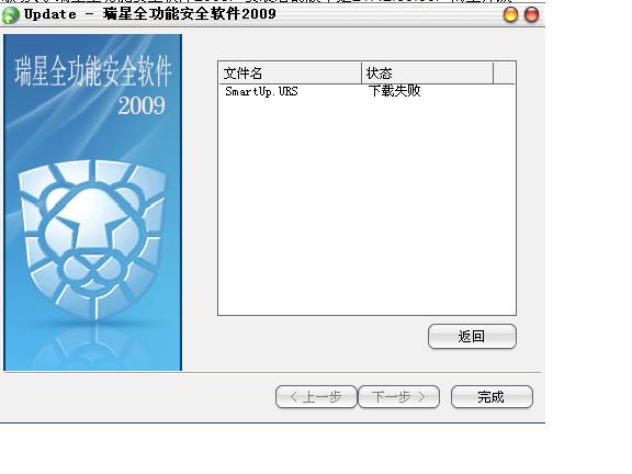 上周在电脑城购买了瑞星全功能安全软件2009,安装后的版本是21.42.30.00,网上升级总是提示 SmartUp.URS下载失败。附图。