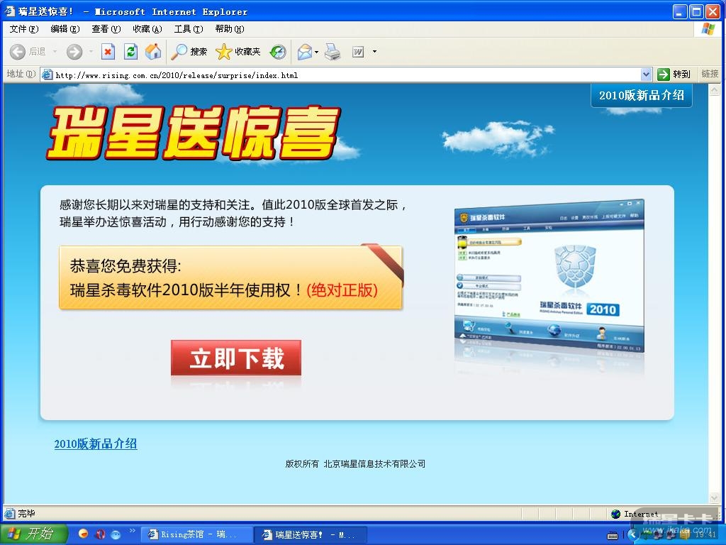 瑞星2010版隆重上市,免费用半年。