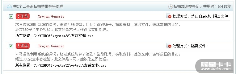 别说你是用360杀完再用瑞星扫描?