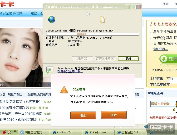 今天在线安装卡卡助手时,出现以下界面,卡卡还是瑞星的问题?????????