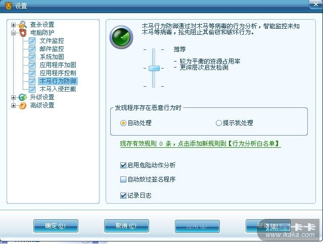 在木马行为防御中设置发现恶意行为是自动处理。如图: