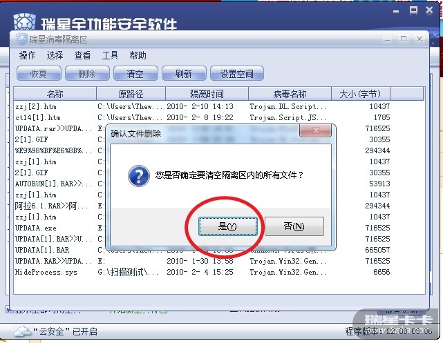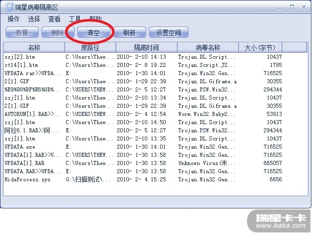 RAVBIN是瑞星的病毒隔离区,若您认为隔离的病毒文件没有误杀或者不需要,您可以通过病毒隔离区工具清空