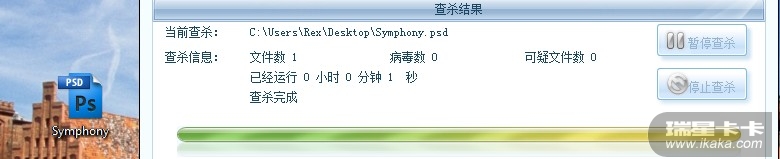 全盘查杀时,每次杀到C:\Windows\ehome\CreateDisc\Styles\NTSC\Symphony\Symphony\Symphony.psd文件时就死机,此现象已有6个月了。快速杀毒和开机杀毒则无此现象。