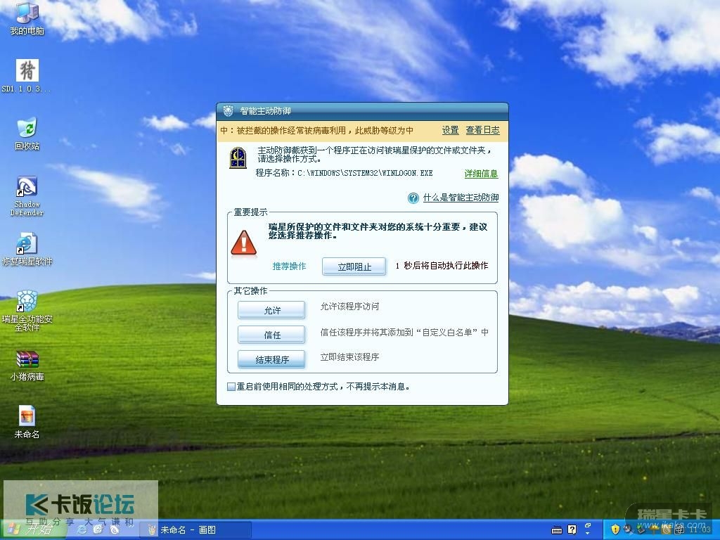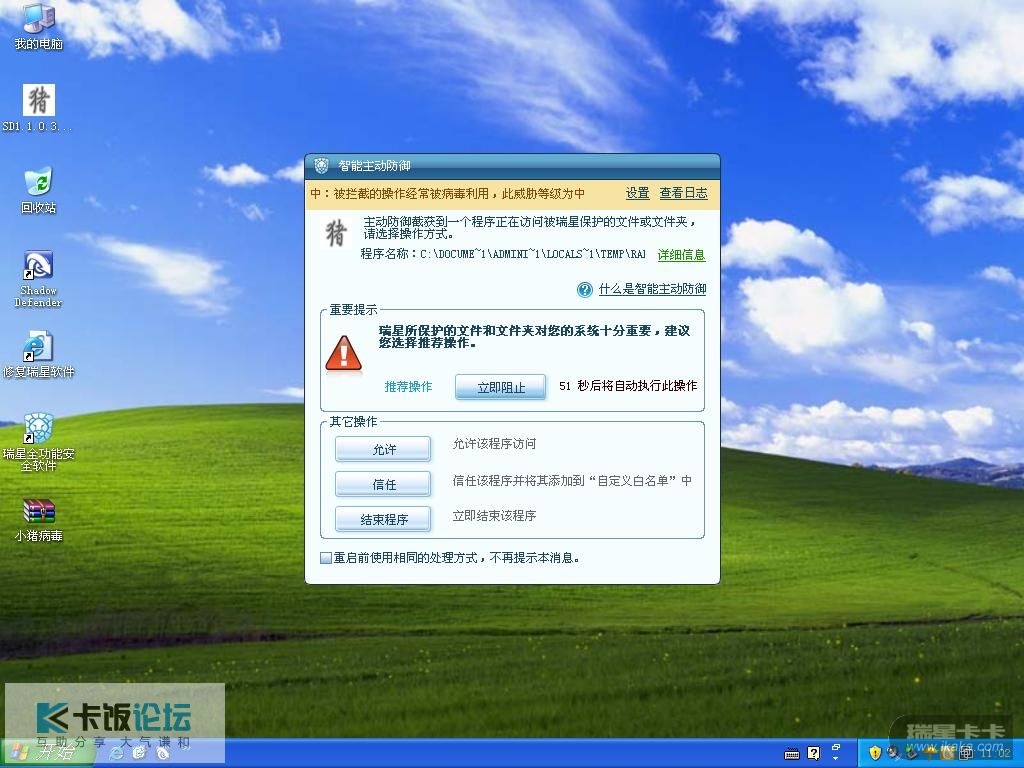未见瑞星发威,系统中exe已被感染...,然后系统加固报警2次,但为时已完...
