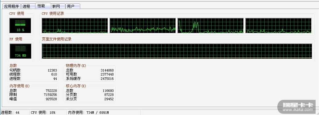 楼主的瑞星是什么版本的?可否提供任务管理器的截图看一下