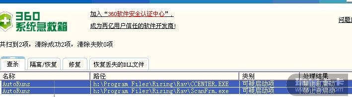 360急救箱说我装的瑞星是病毒,急救下!!!