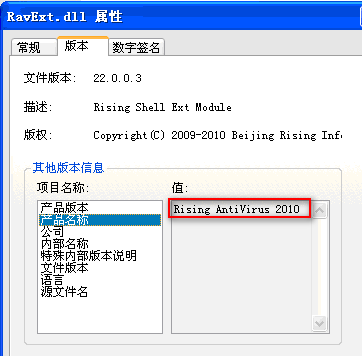 在我的系统目录中查找到一个名为RavExt.dll文件,是瑞星的DLL文件吗?文件属性版本选项卡(见图)