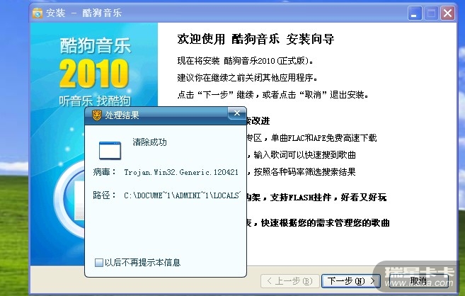 早上从酷狗官方网站下的.瑞星就报病毒.