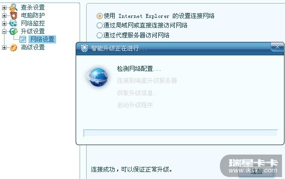 中的连接能提示网络连接成功,可以保证正常升级。。
