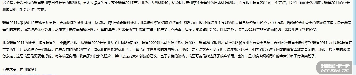 回复:瑞星2011即将公测,请大家注意啊
