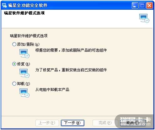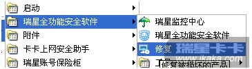 1、请您依次点击,【开始】——【程序】——【瑞星全功能安全软件】(或【瑞星杀毒软件】)——【修复】