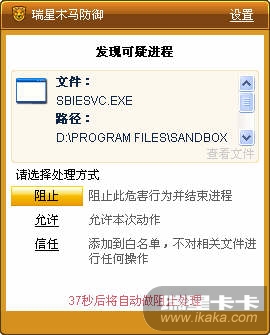 刚升级到2011每次开机进入,木马防御都会提示沙盘的SbieSvc.exe文件可疑进程,每次开机从进入桌面开始,7分钟多的时间电脑失去响应(酷睿2双核2G内存啊!),除了鼠标可以动。。。直到瑞星木马防御提示才可以!点击 信任 以后,每次开机还是这样,白名单里根本没有,只能手动添加到白名单以后,问题解决!