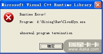 今天升级后,一直出现rntime error的提示,隔一会就崩出来,怎么解决?瑞星的版本号是23.00.11.70