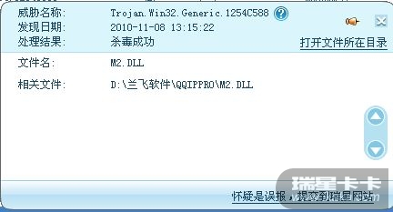 今天瑞星升级,把以前正常使用的软件当病毒了!