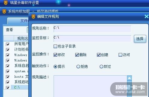 如果有程序触发规则时右下角显示的类型就是个文件访问```完全不知道程序的动作是要创建或是删除文件