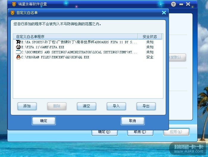 这几个程序 被瑞星监控木马防御报 木马~~然后我选择了信任 然后我去木马防御 白名单 清空了他们 为什么 在此打开白名单 还是有这几个程序呢 已上图~~~~