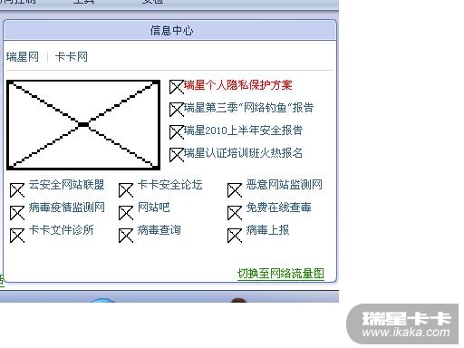 请朋友们帮看我的瑞星全功能安全软件打开了就是这样的。怎么解决?图片部分都是这个XXXX的。这个是怎么回事?请帮帮忙。