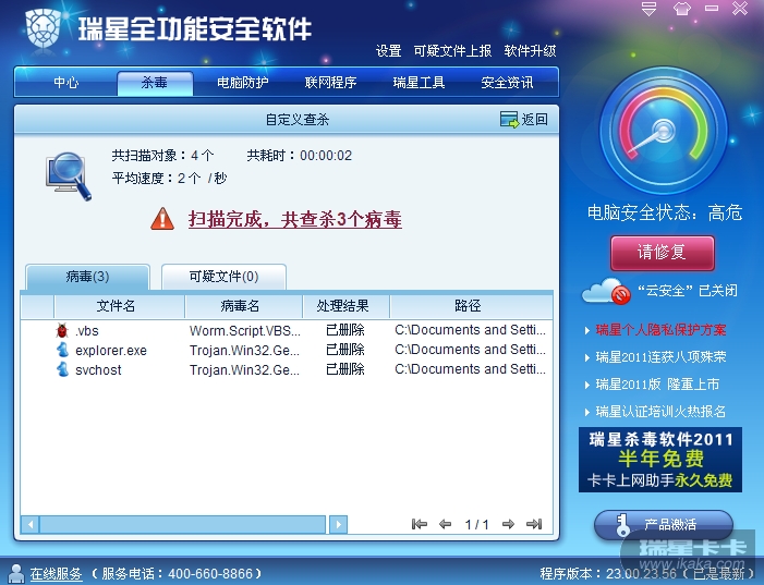 哥几位看看,怎么个意思啊! 另外,卡卡的文件粉碎程序没用啊,根本删不掉文件夹EXE病毒,只能是删除过程中激活了瑞星才删除了。