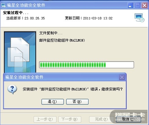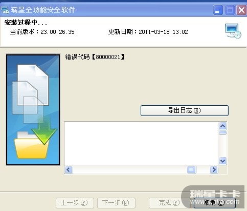 请楼主不保留配置文件卸载瑞星后删除安装目录重新安装。