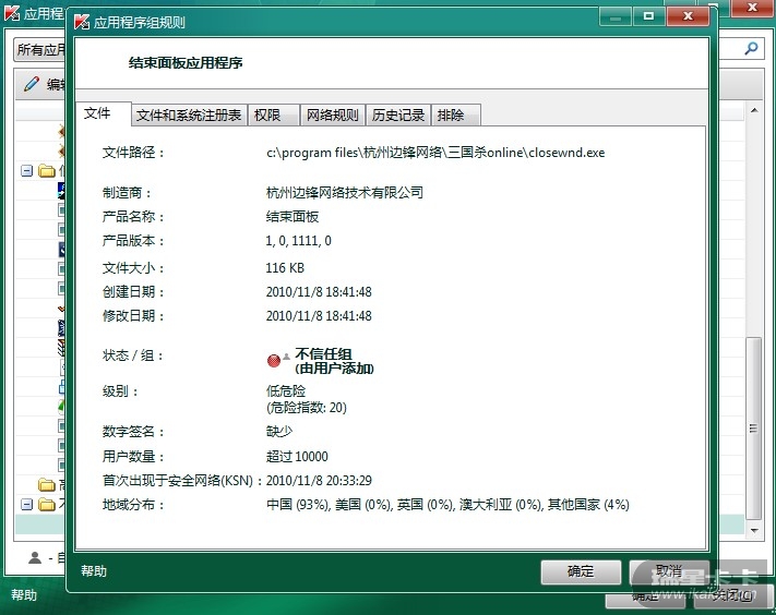 瑞星2011后、对瑞星2010的病毒感染回滚已经改善很多了、但是总觉得瑞星缺一点点东西、也许是我用卡巴斯基太久的关系、但是我觉得卡巴斯基2011的程序控制相当完美、在程序控制里面加上安全信誉评级服务、卡巴斯基的安全信誉库识别程序、多少人信用、对其风险评级、每个程序指定限权和资源的访问控制、这一点对于开交互模式的用户非常有用、就比如三国杀客户端那个版本、在退出的时候会弹出一个广告、用卡巴斯基程序控制设置为不信任、以后就再也看不到广告了、其实程序控制很实用、进可攻退可守。。还有就是希望卡U的情况有所改善。。希望瑞星也开发这样一个功能
