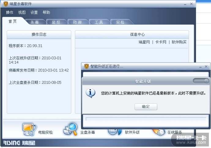 版本太旧了,直接在网站下载瑞星2011吧,将系统里的旧版本卸载掉重新安装再升级。