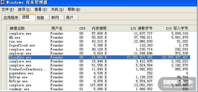 任务管理器截图已上传。为何会如此?注:瑞星杀毒已更新到最新。