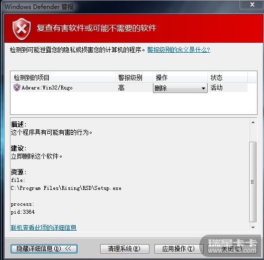 点过删除,结果就是修复瑞星的那个快捷方式被删除了,但第二天开机又会提示同样的问题,困扰!求解决!