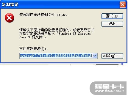 我的电脑是是正版 WindowsXP sp2操作系统!用瑞星的漏洞扫描功能后有 “WindowsXP-KB936929-SP3”的漏洞,下载后安装一段时间后出现“安装程序无法复制文件 ntldr,请确认下面指定的位置是正确的,或者更改它的并在指定的驱动器中插入Windows XP Service Pack 3 源文件”,从而导致无法安装下去,而取消盖更新,对了,我的电脑已经更新安装了IE7.0。