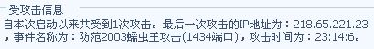 这是怎么回事,防火墙提示防范2003蠕虫王攻击(1434端口)
