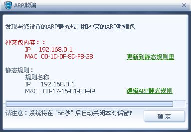 我最近老是发现防火墙提示“发现与您设置的ARP静态规则冲突的ARP欺骗包”,且局域网速超慢,特别是防火墙“未启用ARP欺骗防御”的时候网速更慢,我的网关地址与MAC绑定的就是现在用的网关,收到欺骗包的MAC和地址在局域网内也追踪不到,根本没有这个MAC,公司就40台机子在用,到目前也不晓得怎么解决。请问怎么解决?
