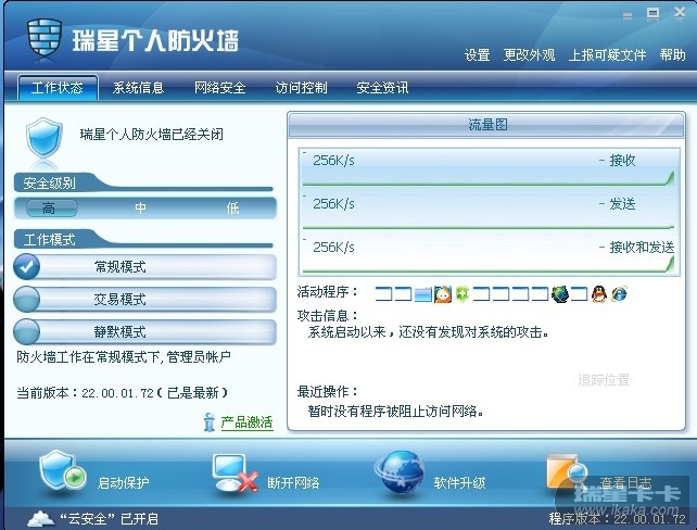 本人电脑前几天上网不幸中马,还原到以前的备份后瑞星杀毒软件和防火墙都显示没有注册,后找到CDKEY注册后杀毒功能已经恢复,但是防火墙一直显示关闭状态,无法启动保护,后经杀毒,查出木马4个,查杀后还是不能正常开启,右下角图标显示灰色,打开防火墙手动点击启动保护1秒后又暗了,但是产品已经注册成功。重新下载防火墙覆盖安装后仍然没效果,本人不想重装系统,希望高手指点下