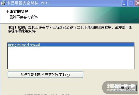 我下了卡巴 安装提示我与瑞星不兼容 怎么办 干掉防火墙·?上图·