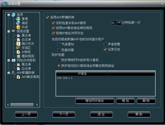 瑞星防火墙_设置_详细设置_ARP防御_启用ARP防御