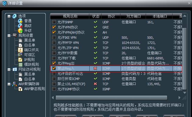 防火墙的详细设置里,ARP欺骗防御>ARP静态规则