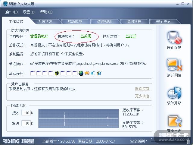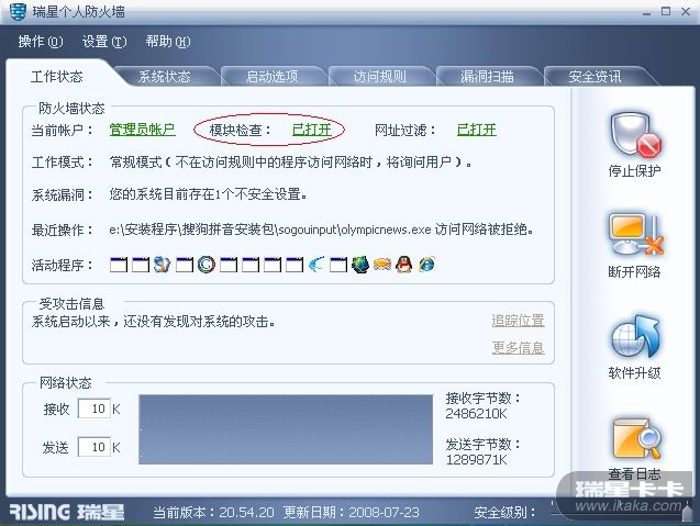 最近暑假,家里小孩子都不用上学,成天泡着QQ,影响学习成绩!所以本人就去“钻研”了瑞星防火墙的功能了,不但能禁用应用程序还能把不良网站给禁闭了,挺管用的!