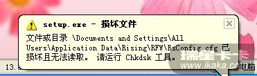 文件目录\Documents and Settings\All Users\Application Data\Rising\RFW\RsConfig.cfg已损坏且无法读取。请运行Chkdsk工具。