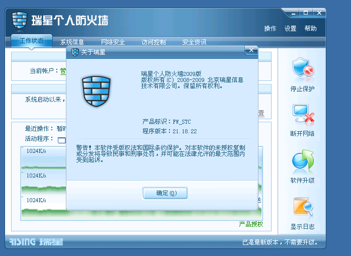 瑞星个人防火墙2009公测