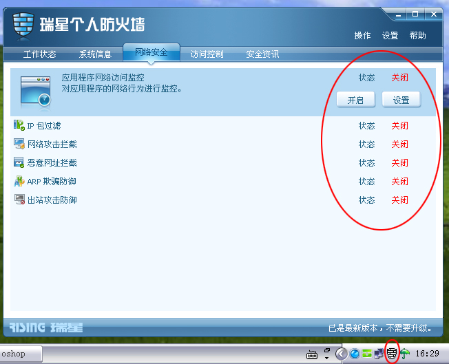不是病毒问题,我的和你一样,我2000服务器上升级瑞星2009,先蓝屏,0x0000000A:IRQL_NOT_LESS_OR_EQUAL主要是由问题的驱动程序、有缺陷或不兼容的硬件与软件造成的. ,重启后发现新硬件,防火墙不会自动启动,手动启动后,任务栏图表呈灰色,点击网络安全里面,就是你的截图模样........